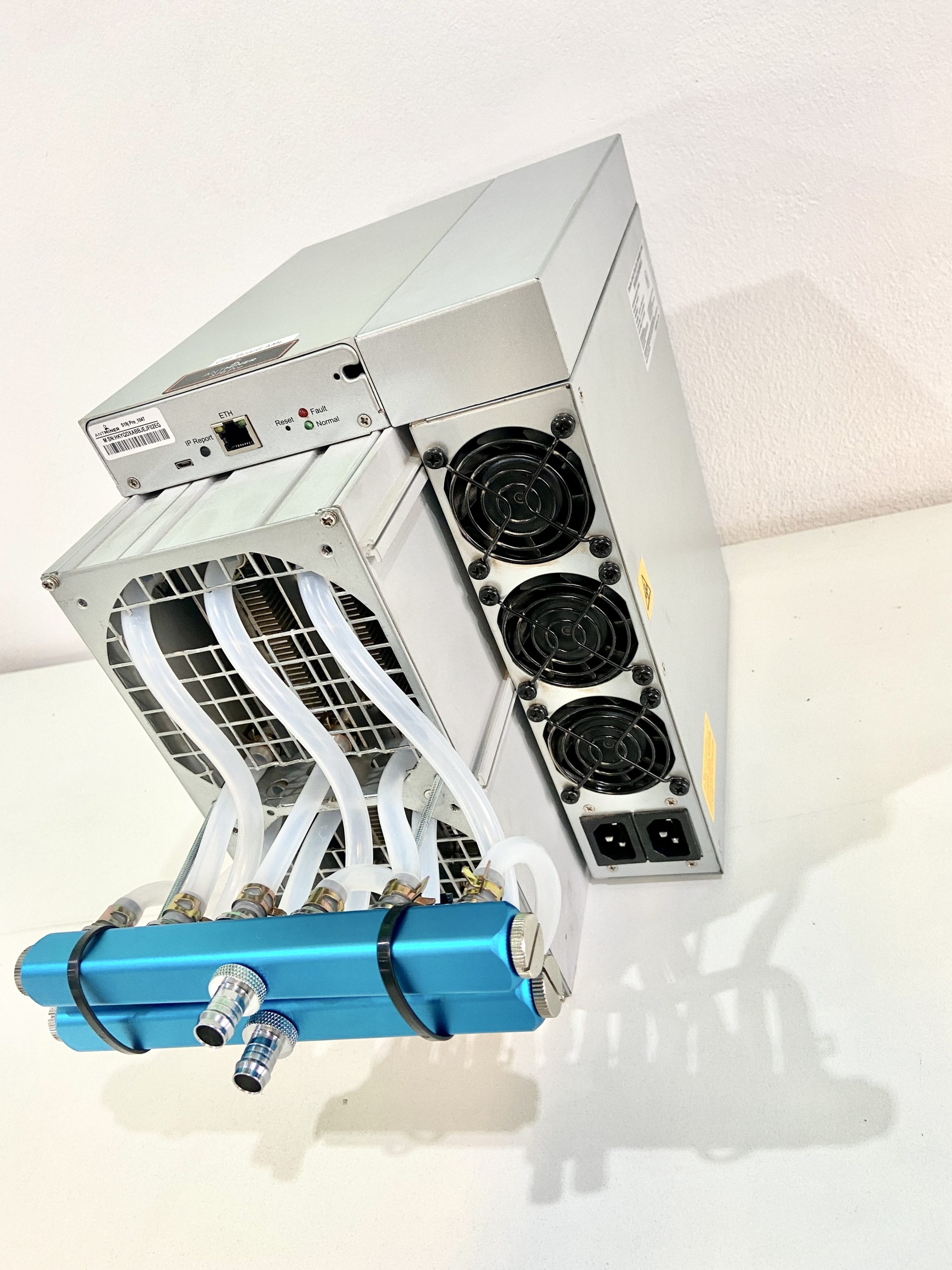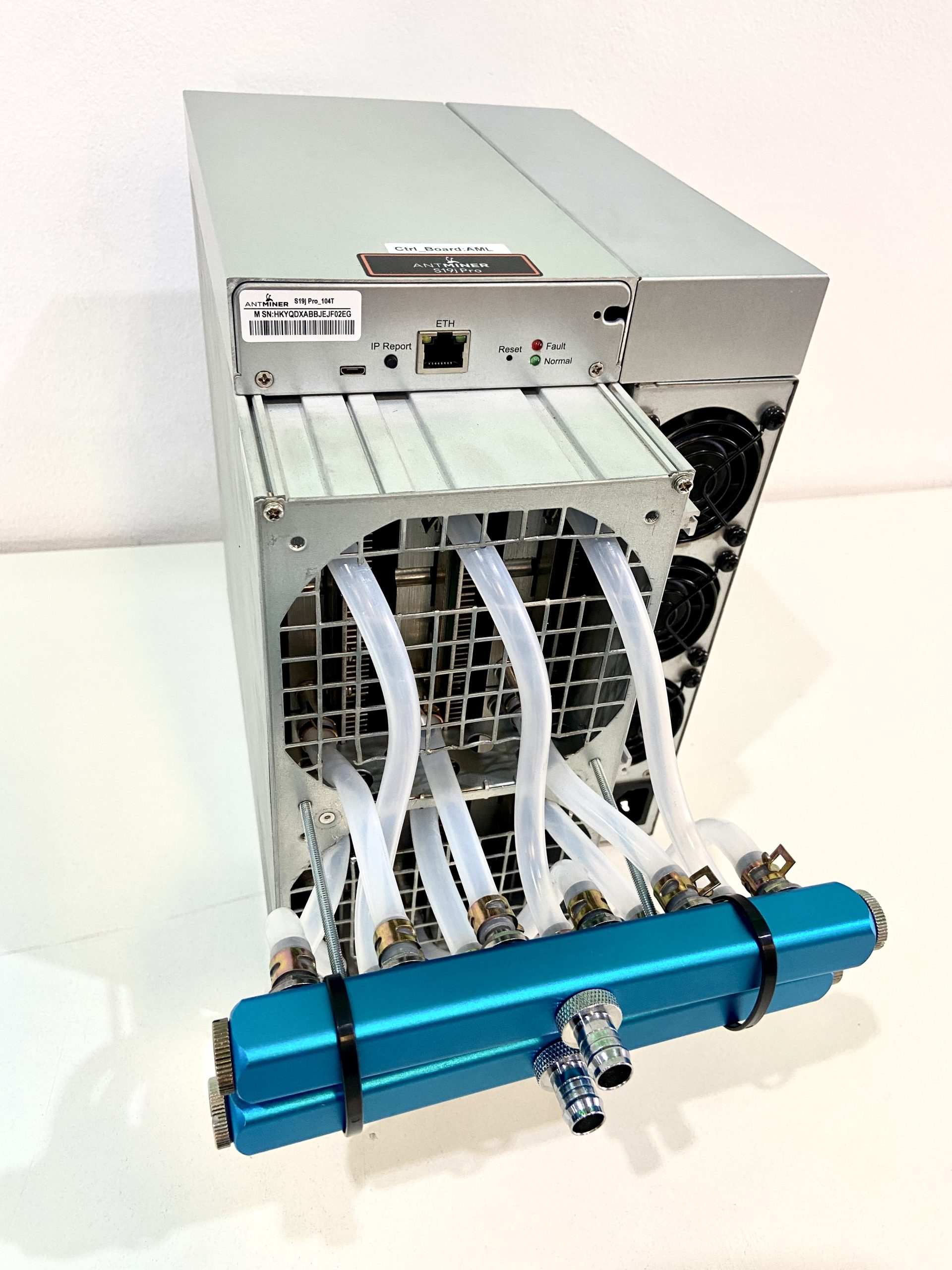 El líquido actúa como medio de transferencia térmica y se lleva el calor de los chips a un circuito de enfriamiento continuo exterior para retornar nuevamente más frío al ASIC de manera constante. Esto mejora las temperaturas de trabajo de los chips, permitiendo a su vez aumentar la exigencia del equipo que puede generar hasta un 40% más de BTC en algunos equipos.